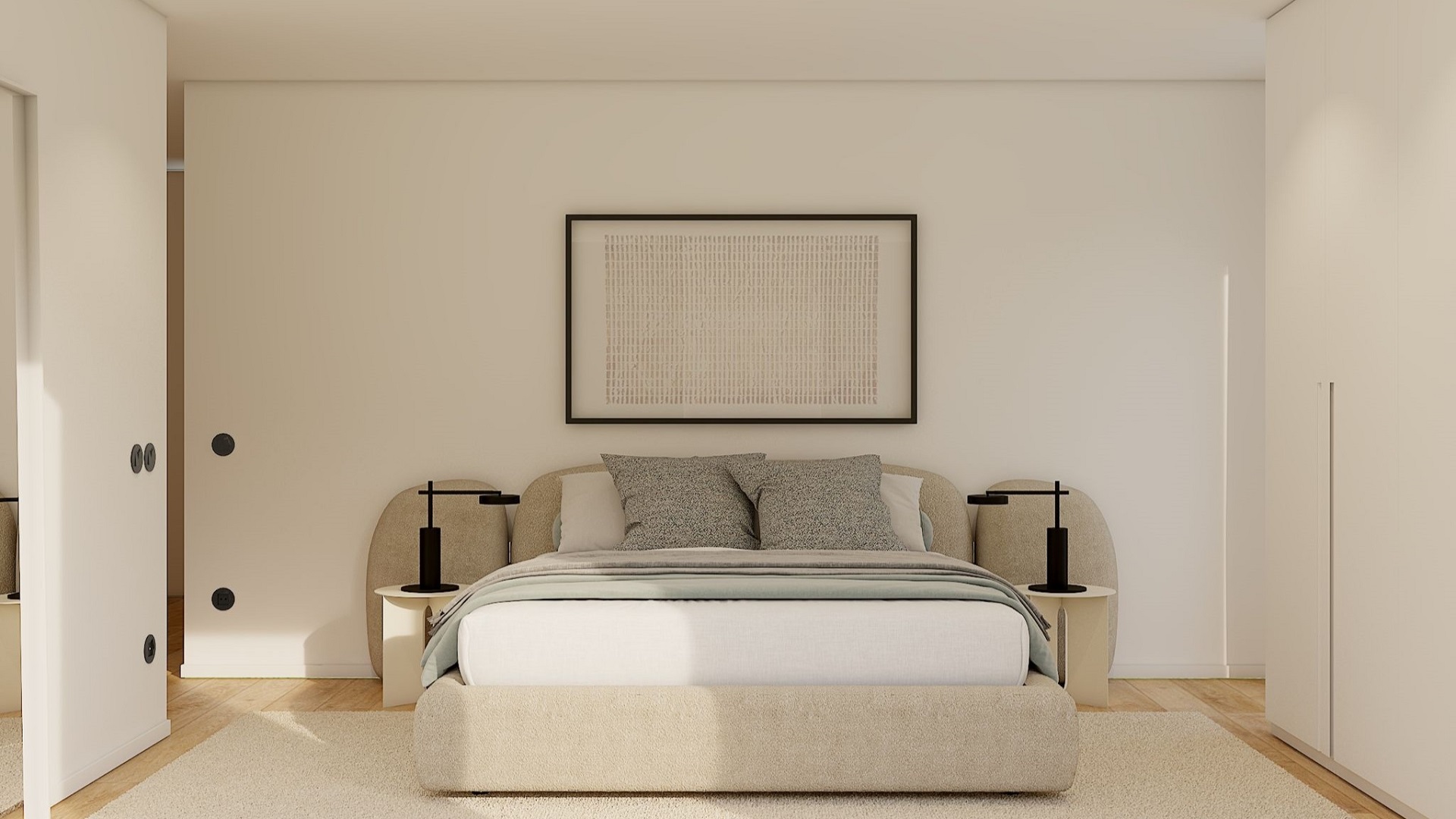 À l'intérieur, les appartements privilégient la fonctionnalité, la lumière et le confort. Les cuisines ouvertes entièrement équipées s'intègrent naturellement aux espaces sociaux, favorisant une utilisation pratique et contemporaine. Le confort thermique et acoustique est assuré par la climatisation et une excellente isolation, assurant le bien-être en toute saison. Des armoires encastrées, une buanderie individuelle et des solutions de rangement discrètes contribuent à une vie quotidienne organisée.