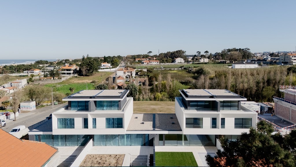 La résidence Jardim da Oliveira est un condominium privé avec un espace vert commun, situé dans un endroit privilégié à quelques mètres de la plage de Valadares à Vila Nova de Gaia. Ce nouveau développement de luxe offre huit villas de 4+1 chambres chacune dispose d'un jardin privé, d'une piscine et d'une vue imprenable sur la mer. Elles sont conçues pour offrir un style de vie sophistiqué où le confort, le design contemporain et la proximité de l'océan s'allient parfaitement.